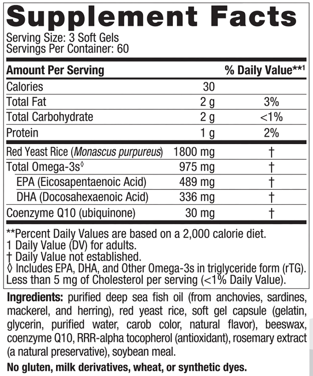 ProOmega LDL combines ultra concentrated omega-3 fish oil with CoQ10 and red yeast rice to provide high-intensity support for cardiovascular health and function.* Omega-3s EPA and DHA work together with the powerful lipidmetabolizing action of red yeast rice and CoQ10 to support healthy blood vessel function, promote the metabolism of dietary fat and cholesterol, and provide powerful antioxidants to counter the effects of free radicals.* This unique blend of potent ingredients offers a multitude of research-backed cardiovascular benefits for enhanced function and cellular energy production.*